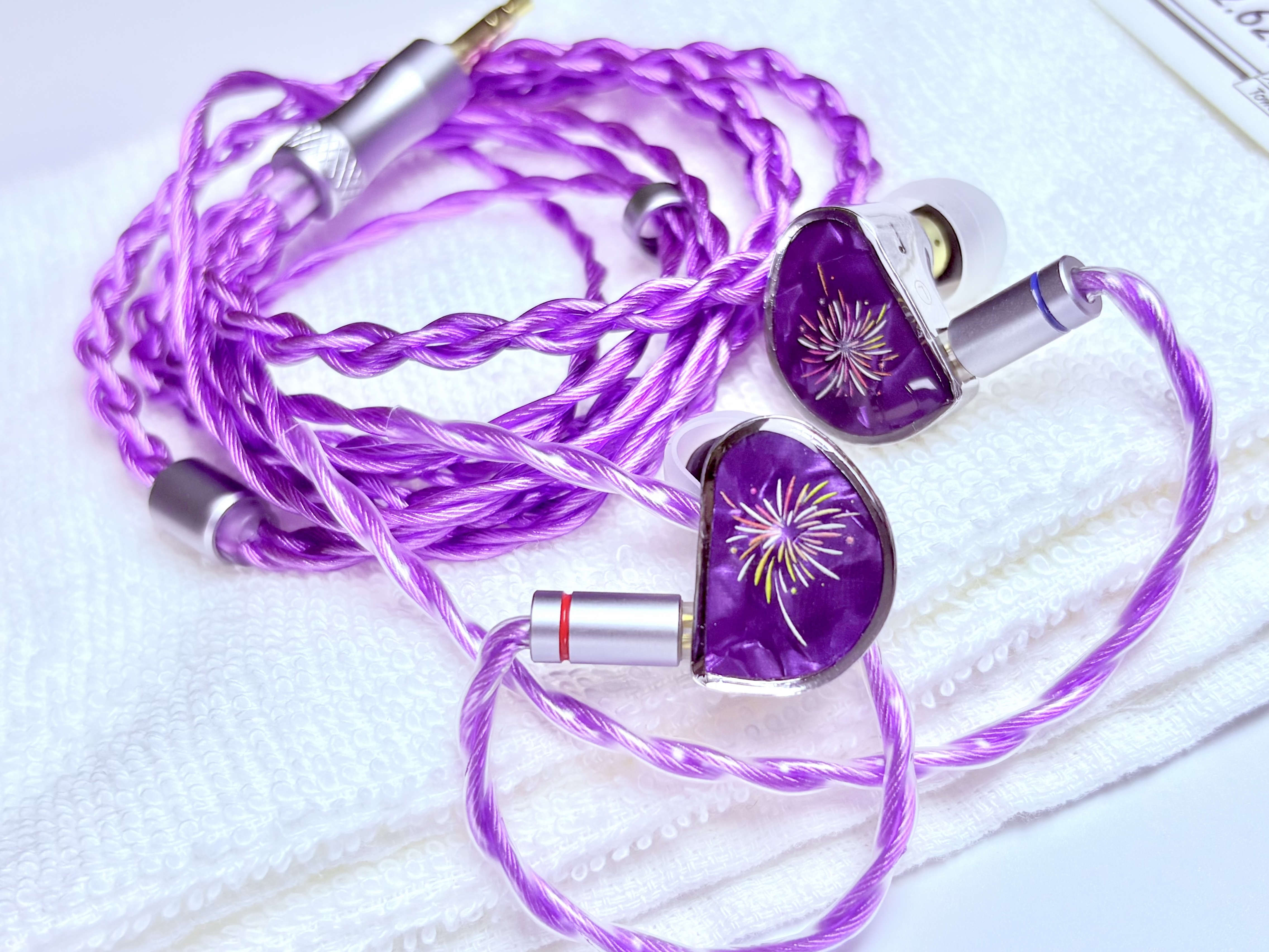 (1)花火音源専用ケーブル(紫): 花火の生々しい迫力 (特に超低域の質感と炸裂の衝撃) と、繊細な高域の煌めき・空気感を最大限に引き出す最適化を施しています。録音された花火の臨場感を忠実に再現します。